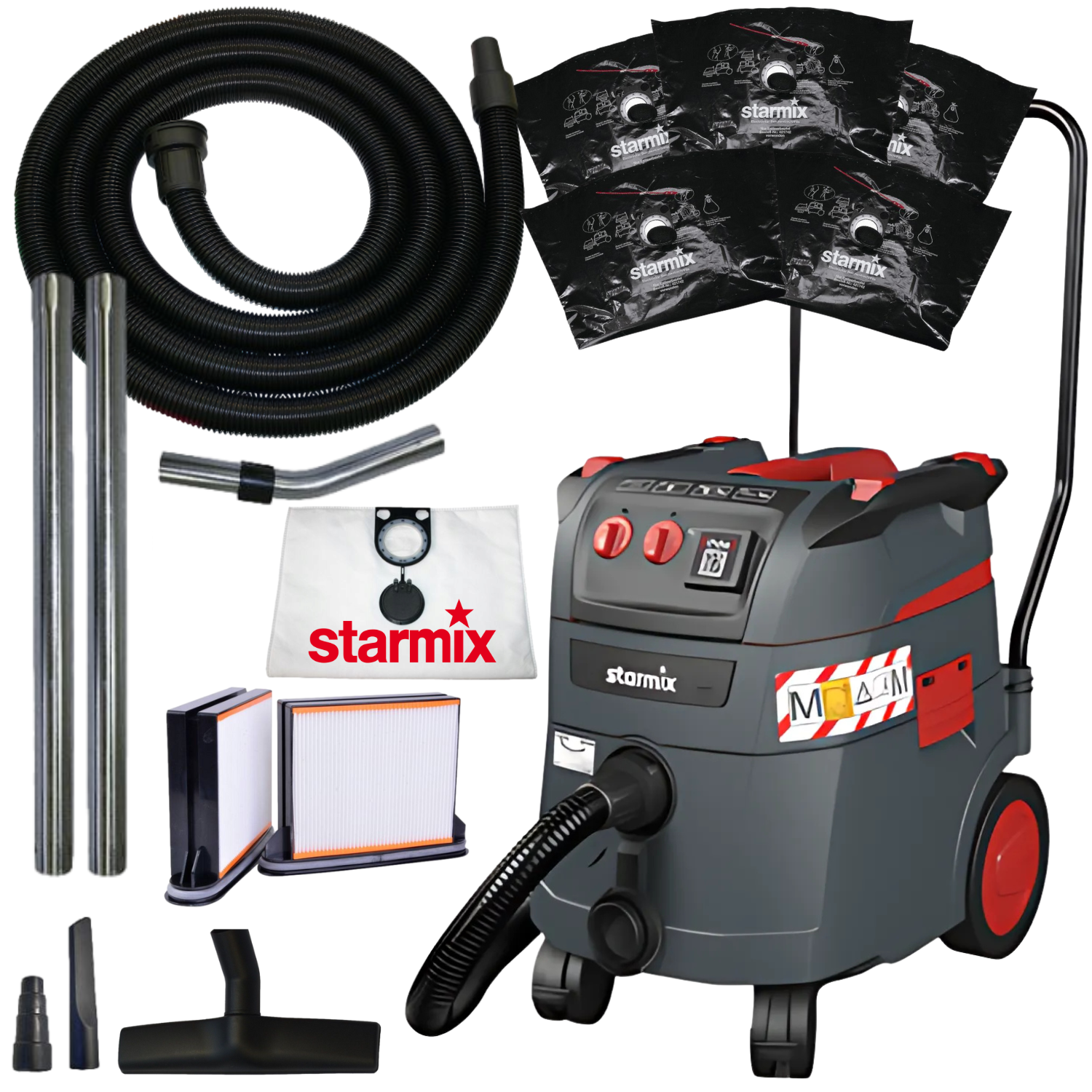 - Profesjonalny odkurzacz przemysłowo-budowlany Starmix do ciągłej i wymagającej pracy, antystatyczny o klasie pyłoszczelności M