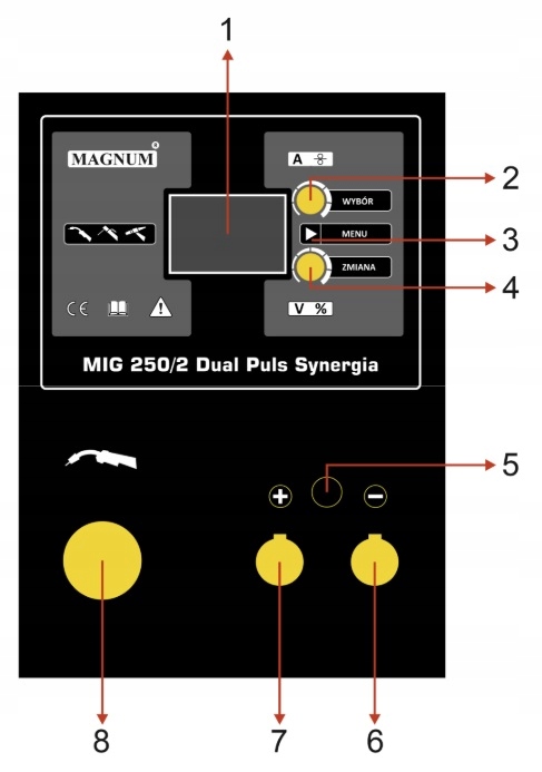 8. Eurogniazdo do podłączenia uchwytu spawalniczego MIG-MAG.
