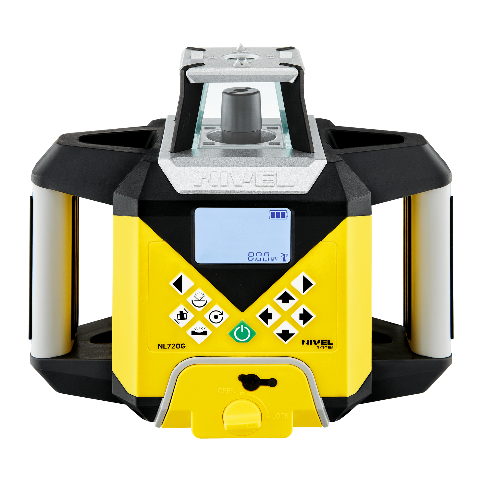 Laser obrotowy Nivel System NL720G DIGITAL to wszechstronne i wielofunkcyjne narzędzie do pracy na otwartych przestrzeniach i w pomieszczeniach. Model ten jest wyposażony w dobrze widoczną zieloną wiązkę lasera, czterokrotnie bardziej widoczną niż konwencjonalna wiązka czerwona, i jest zbudowany w oparciu o sprawdzoną, wydajną technologię laserową firmy Nivel, zapewniającą bardzo dokładne pomiary. Niwelator wyznacza płaszczyznę poziomą (także pochyloną w 2 osiach), pionową, a zastosowany pionownik laserowy określa pion lub kąty proste. Sprzęt wyposażony został w system automatycznego wpasowania wiązki laserowej. Funkcja ta ułatwia wyznaczanie spadku (praca w poziomie) i kierunku (praca w pionie). Laser poziomuje szybko, nawet na dużych odległościach roboczych (odległość 700 m) i w trudnych warunkach terenowych oraz jest odporny na drgania terenu. NL720G DIGITAL jest standardowo wyposażony w cyfrowy czujnik, który wyświetla różnice wysokości w postaci cyfrowej. To znacznie upraszcza i przyspiesza pomiary. Posiada również intuicyjny interfejs z wyświetlaczem LCD. Może być również zdalnie sterowany za pomocą bezprzewodowego pilota.