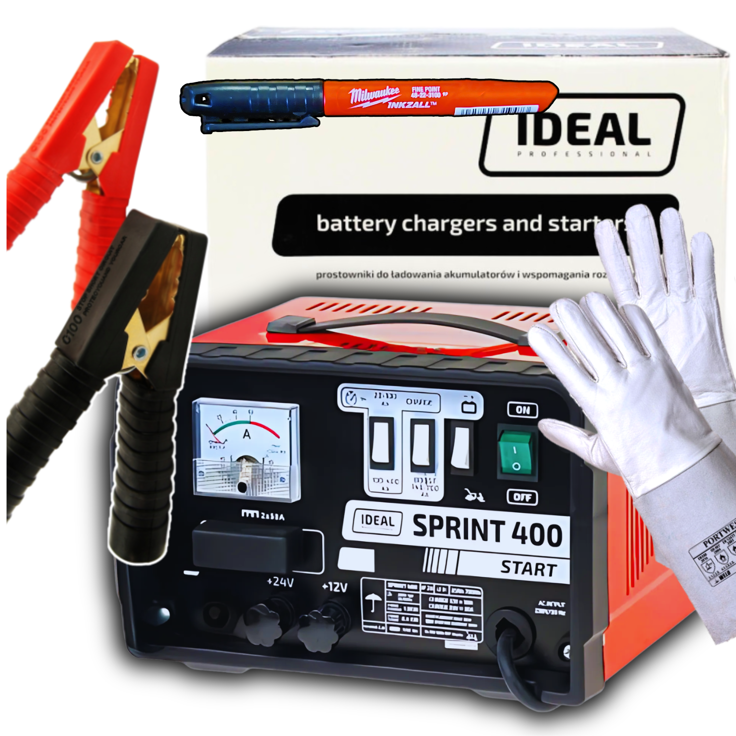 IDEAL PROSTOWNIK SPRINT 400 START 230V 12-24V + rękawice + marker