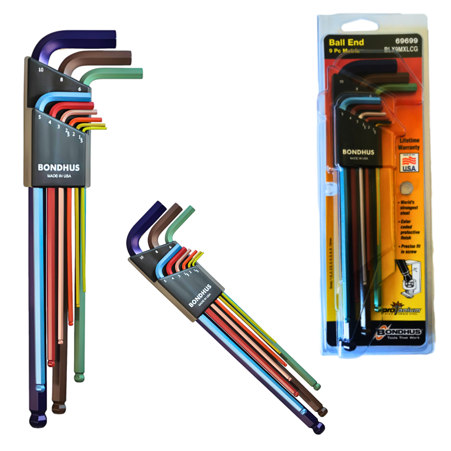 - Zestaw profesjonalnych kluczy imbusowych BONDHUS, wykonanych ze stali ProTanium®, pokrytych specjalną warstwą ColorGuard™