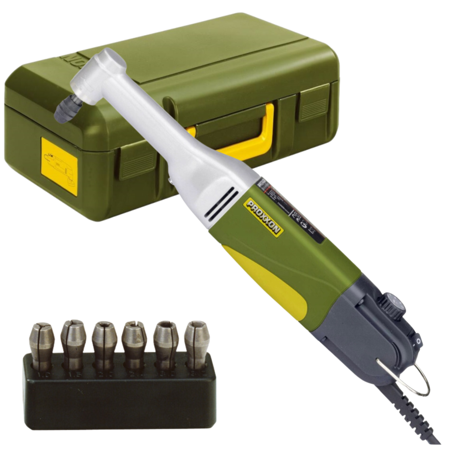 - Modelarska wiertarka kątowa Proxxon o mocy 110W z długą szyjką do prac w trudno dostępnych miejscach.