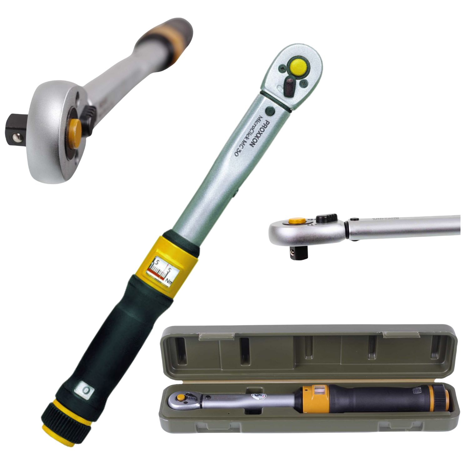 Profesjonalne klucze dynamometryczne PROXXON MicroClick, to narzędzia precyzyjne o wysokiej dokładności (tolerancja +/- 3% wg ISO 6789). Kalibrowane i kontrolowane indywidualnie. Mechanizm grzechotkowy z przełącznikiem obrotów prawo-lewo. Automatyczne zwalnianie przez wyraźnie słyszalny i wyczuwalny „klik” przy osiągnięciu wybranego momentu obrotowego.