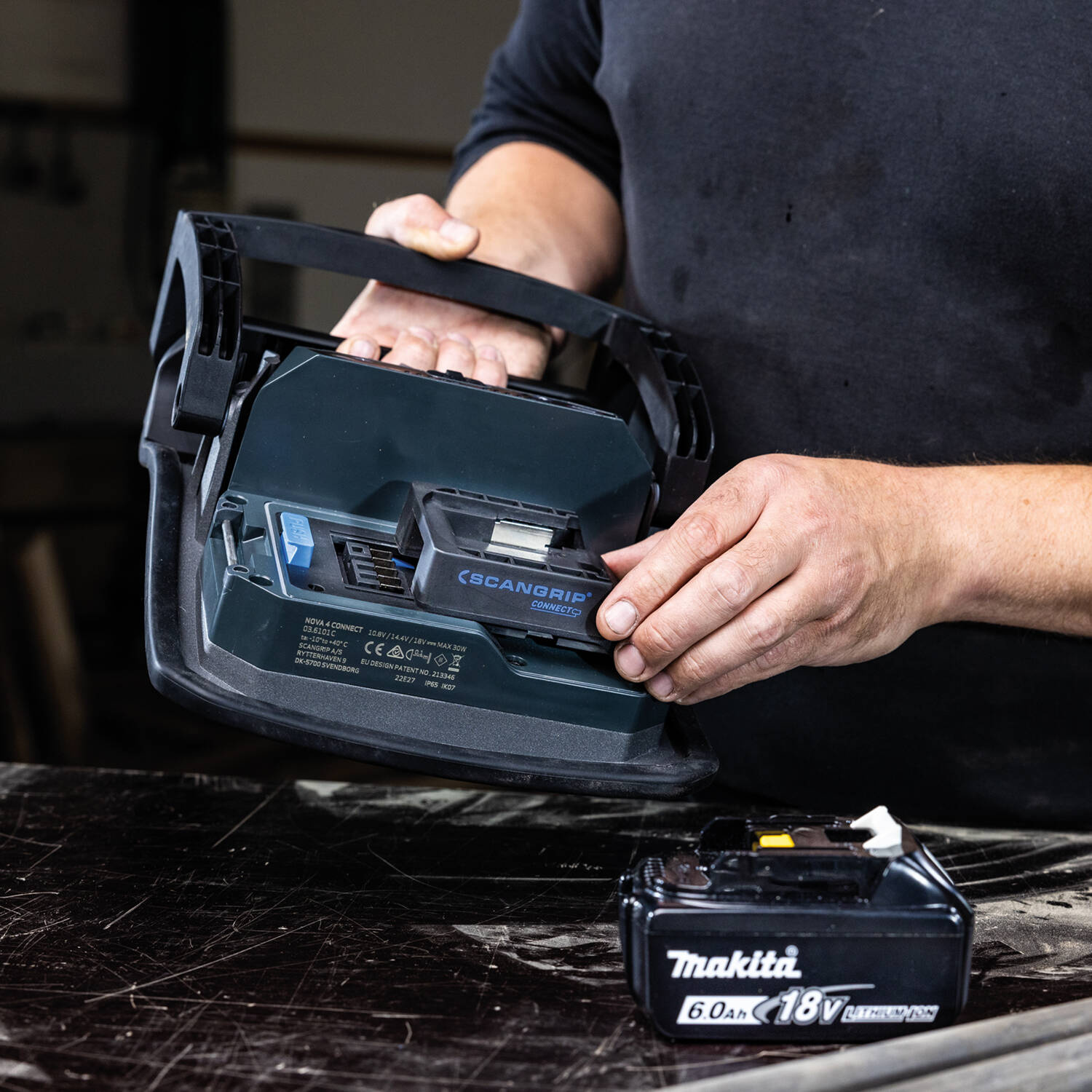 ✅Wyjątkowo wytrzymała lampa robocza zasilana akumulatorowo, kompatybilna z systemem akumulatorów METABO/CAS 18V i wszystkimi innymi akumulatorami 18V/20V wiodących marek elektronarzędzi, takich jak Milwaukee, Dewalt, Makita, Bosch, Festool, Flex, Einhell, Hikoki itp. za pomocą adaptera SCANGRIP.