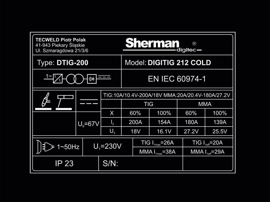 SHERMAN SPAWARKA TIG DC DIGITIG 212 MMA SPOT COLD