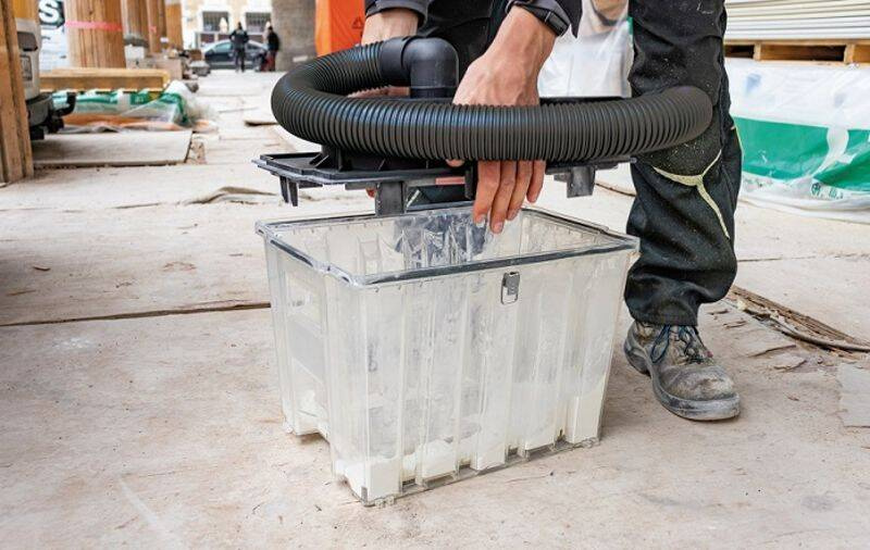 Separator jest połączony z odkurzaczem specjalnym wężem antystatycznym, który transportuje resztki zmielonego pyłu przez separator do odkurzacza.